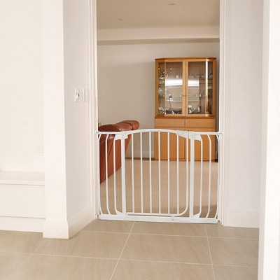 This baby gate expands to stairways and openings between 24-405 inches wide and stands 2875 inches tall before making any decision take a look at your stairways and the size of the opening and the height you require for the stairs with spindles as well as must look.