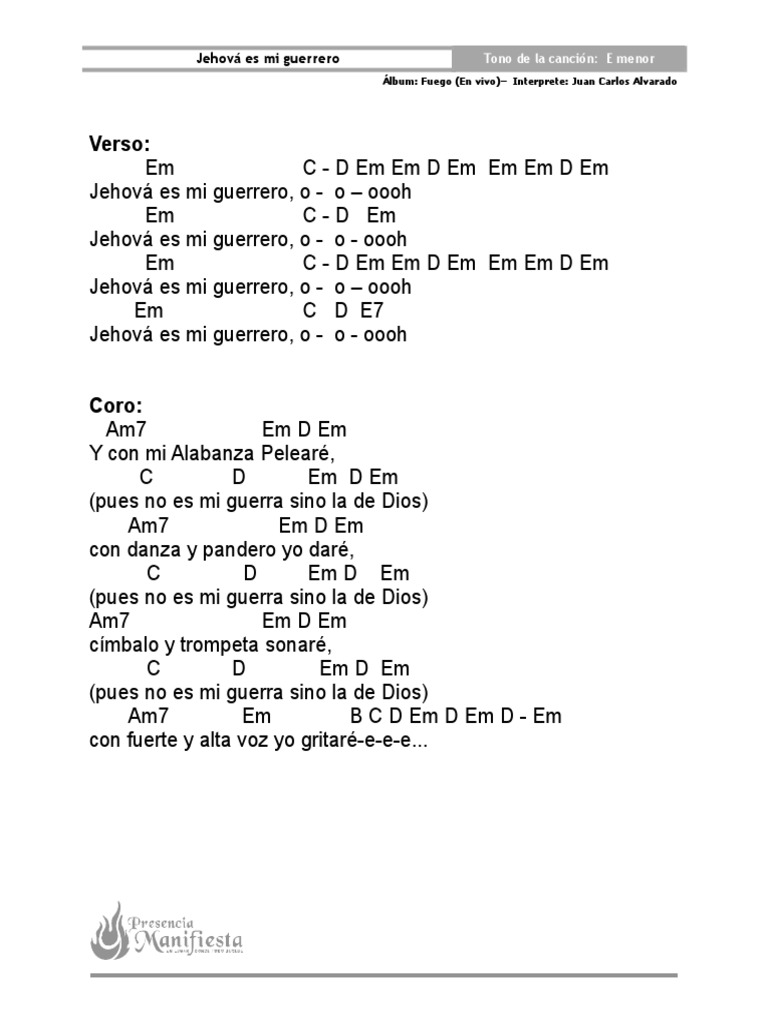 Danza y pandero yo daré Pues no es mi guerra sino la. App Android de acordes de guitarra. Palabra en Accion - Jehova Es Mi Guerrero tradução Letra e música para ouvir - Jehova es mi guerreroohh Con Mi alabanza pelearè Pues No es Mi Guerra Si no la de Dios Danza y pandero yo dare Pues No es Mi Guerra Si no la de.