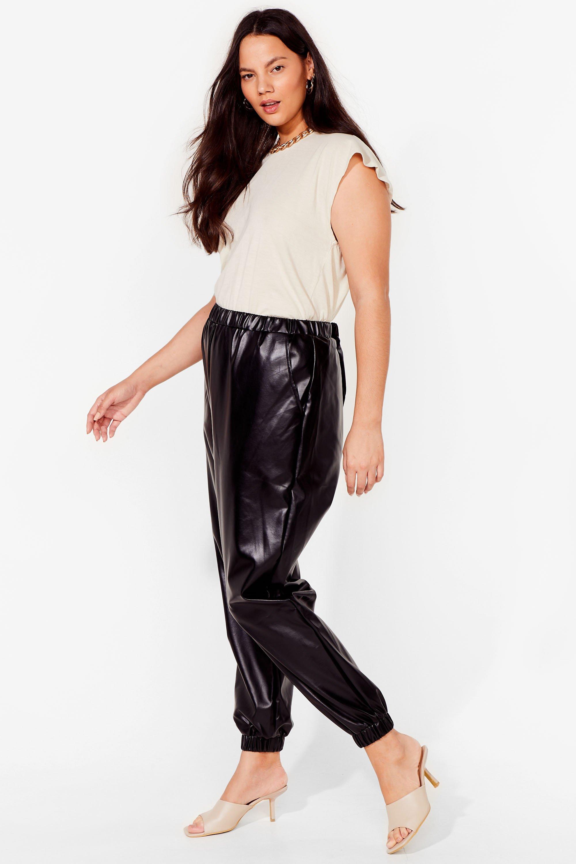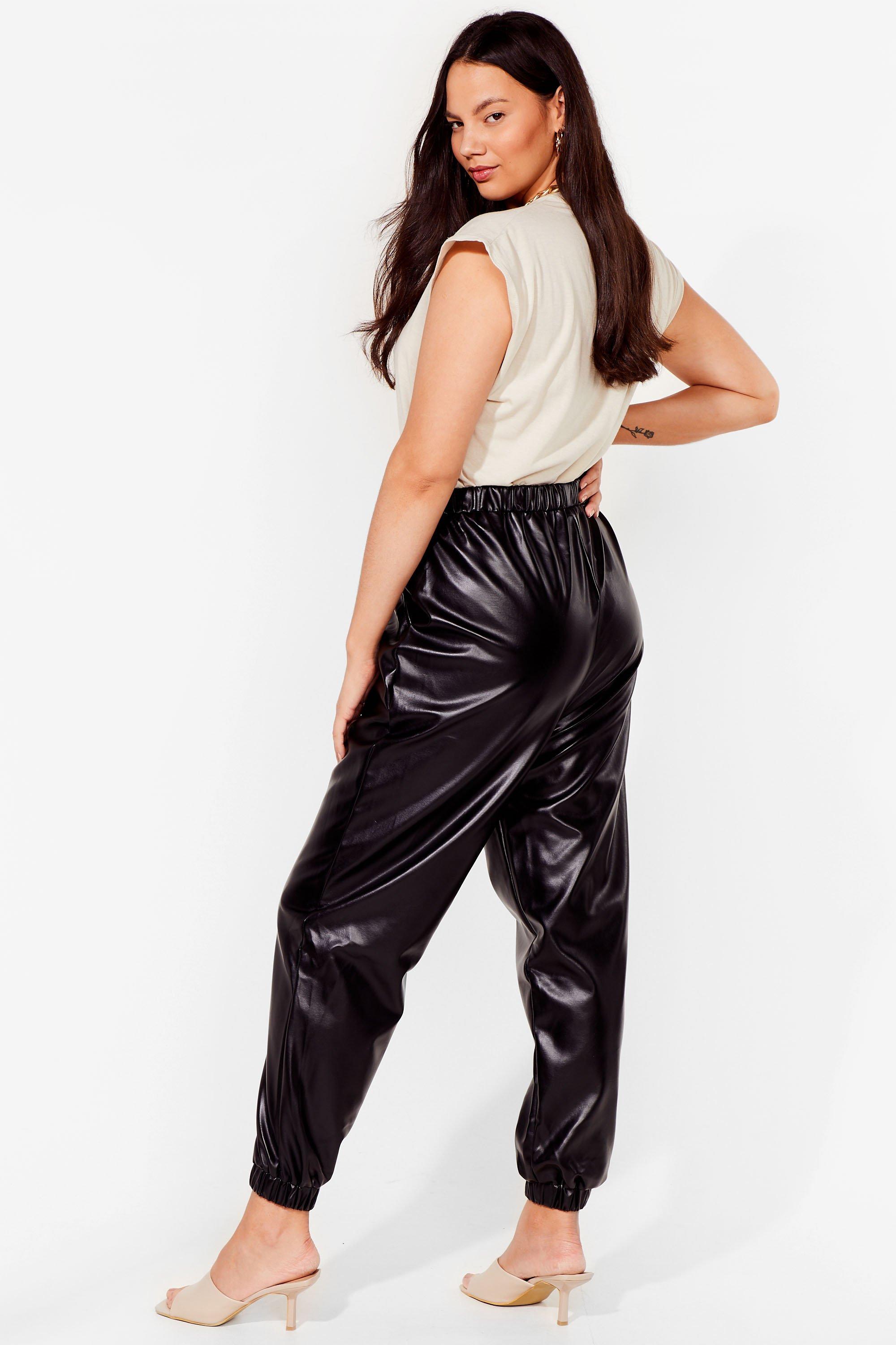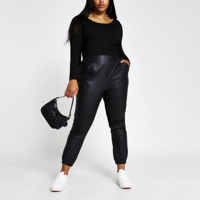 Faux leather joggers plus size. Shop our new Plus black faux leather joggers at River Island today. I love the elastic waist making them extremely comfortable. Shop Curve Black Faux Leather Joggers at Yours Clothing.